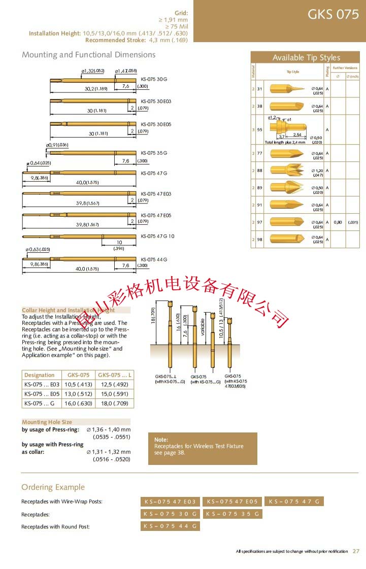 2014-09-06昆山彩格機電設備有限公司祝福所有朋友中秋節快樂2013-11-12生物探針解密細胞如何工作2013-11-12測試探針的介紹2013-11-12測試探針及相關材料在測試治具中的選用2013-10-03彈簧探針測試座2013-10-03電子探針的作用